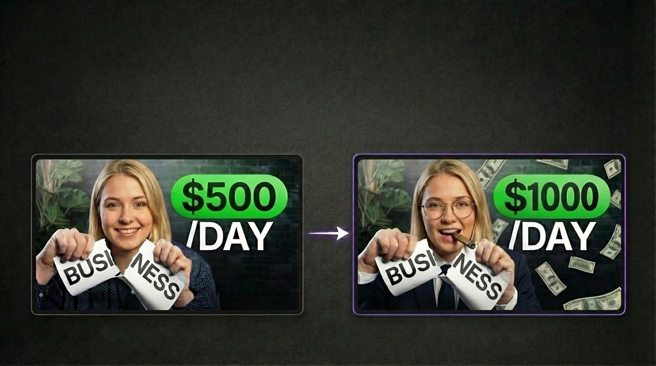 Notre modèle IA spécialement entraîné sur des milliers de miniatures virales vous permet de modifier vos créations avec une précision chirurgicale. Chaque modification conserve la qualité et l'impact visuel.